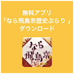 無料ダウンロードアプリ「なら飛鳥京歴史ぶら り 〜飛鳥時代へタイムトリップ〜」をダウンロー ドすれば、再現イラストマップ上で、さらに音 声ガイドや復元 CG、年表など、飛鳥京の歴史ス トーリーを楽しみむことができます。