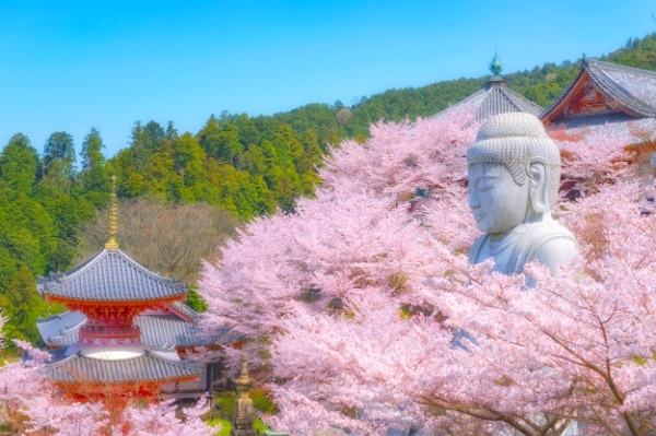 創建は大宝3(703)年、西国三十三所観音霊場の第六番札所として古くから信仰を集め、清少納言からも霊験あらたかな寺として称えられ、寛弘4年(1007年)には左大臣藤原道長が吉野参詣の途次に当寺に宿泊している。お里・沢市の夫婦愛をうたった人形浄瑠璃『壺坂霊験記』の舞台でもある。境内にはインドで行っているハンセン病患者救済活動への尽力に対する返礼として、インド政府から贈られたレリーフや石仏像があり、春になると境内の桜が満開を迎えることで見ることのできる桜大仏は観光スポットとして人気である。 ●公式サイトはこちらhttp://www.tsubosaka1300.or.jp/