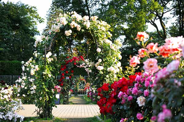 2016年に「世界バラ会連合優秀庭園賞」を受賞 シンメトリックに設計された沈床式庭園に約400種類5,200余株が植えられています 見ごろは春と秋で 朝日夕日を浴びて輝くバラの中にたたずむと天国に居るような錯覚をおこすほど美しいです 住所 Googleマップ Googleマップで確認する アクセス 駐車場 営業時間 入場料・入館料 定休日 TEL URL SNS 公式HP 神代時植物公園 神代植物公園 植物多様性センター 深大寺
